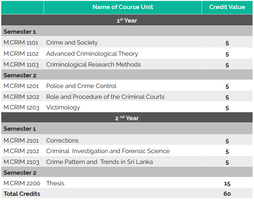 The newly founded Department of Criminology and Criminal Justice has created a path for its graduates to obtain their postgraduate degrees. As a result of this goal, the Department has introduced a Masters Degree in Criminology and Criminal Justice. This program gives an opportunity for the students to enhance their knowledge further on advanced criminological theories and research methods on Criminology. In addition the students will be introduced to advanced applications in Criminology.
