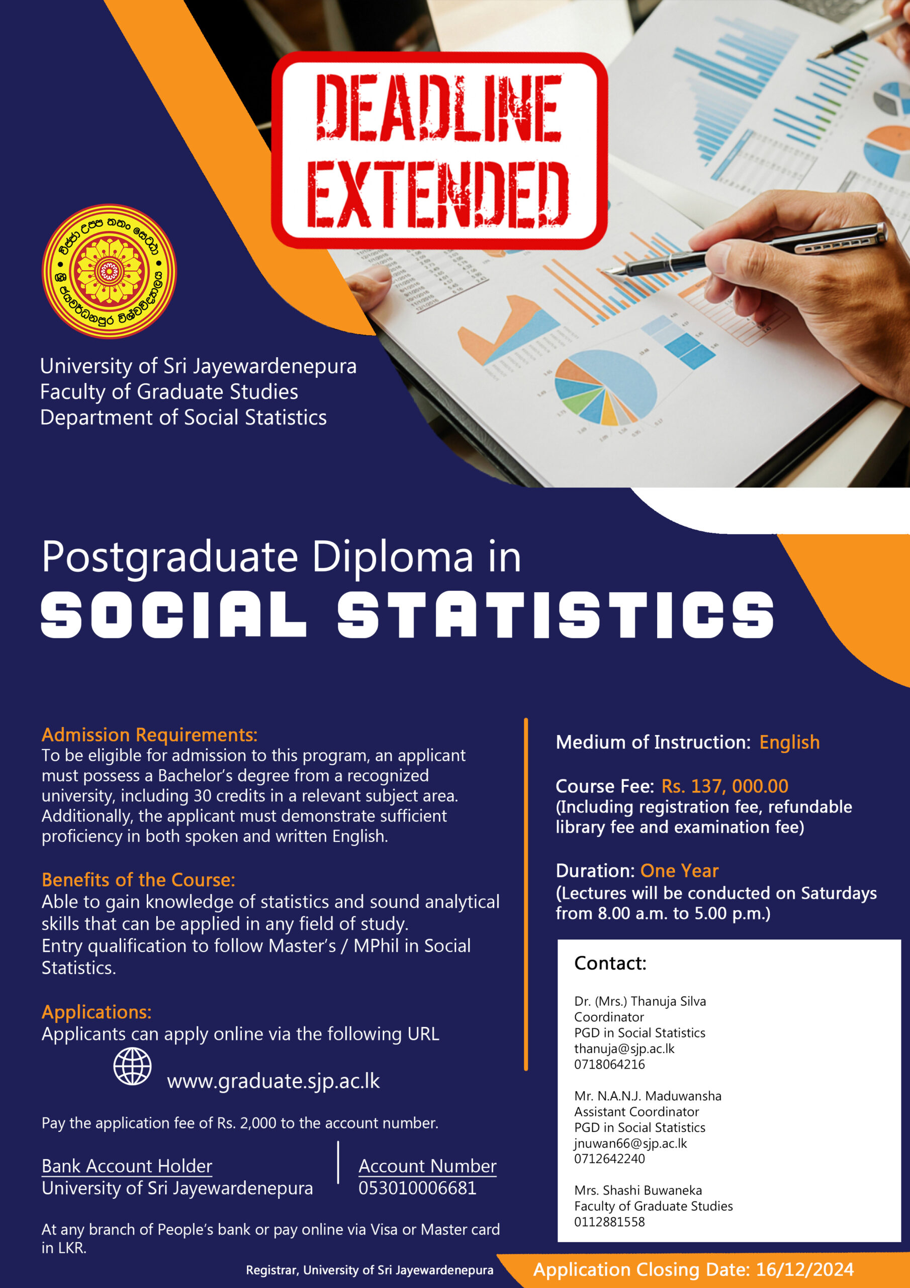 - Select the Course “Postgraduate Diploma in Social Statistics” and login with your email & NIC/passport number
